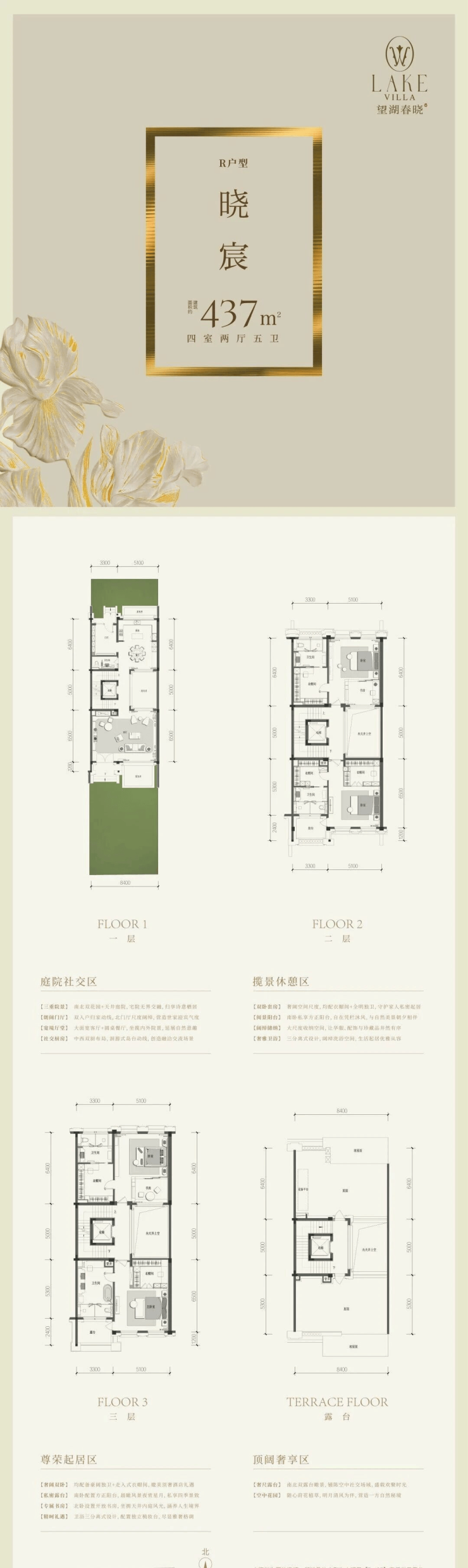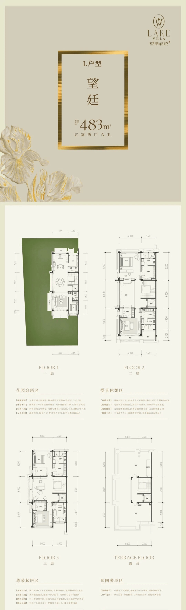 层高:法式排屋地下室层高6.4米,可灵活改造为双层空间,单层面积约150㎡。