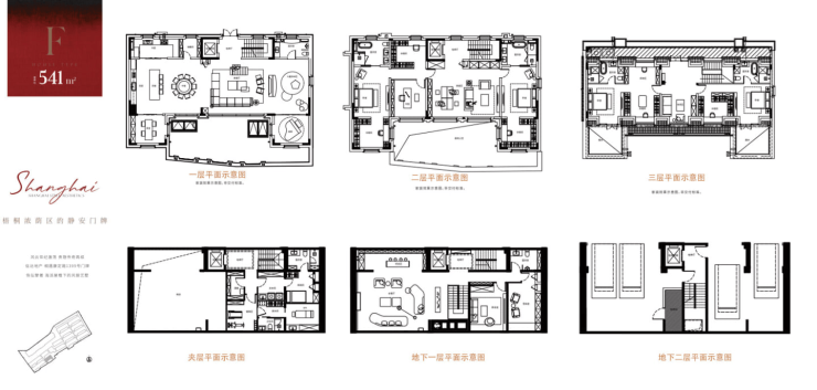 别墅产品:建面约270–541㎡,地上三层+地下一层+私家花园,部分户型地下层高达7.2米,可改造为双层功能空间(影音室、酒窖、健身房);
