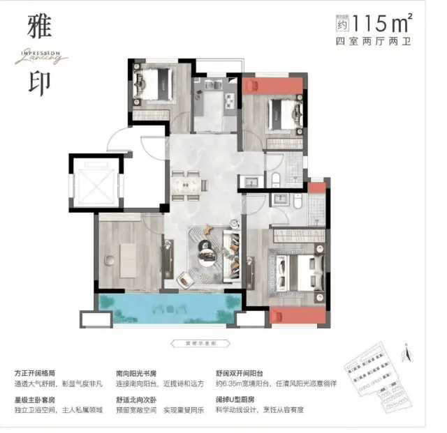 115㎡ 1.15万–1.16万元/㎡ 132.5万元 四房两厅,南北通透,采光优越