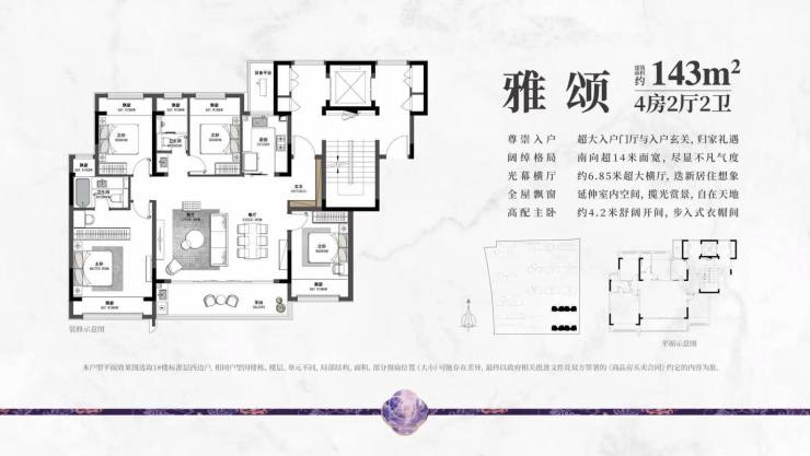 143㎡四居室(洋房):4室2厅2卫,一梯两户,南北双露台,总价390-450万