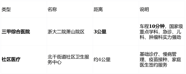 医疗资源覆盖“急病有三甲,日常有社区”,为家庭健康提供双重保障。