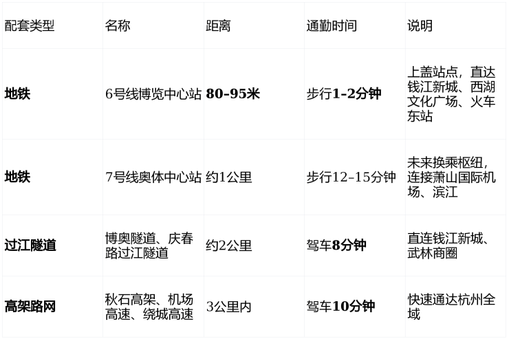 核心水系:毗邻钱江世纪城“亚运水系”——先锋河、利民河、中央水轴,形成5公里滨水绿廊,设亲水平台、慢行步道、景观桥。