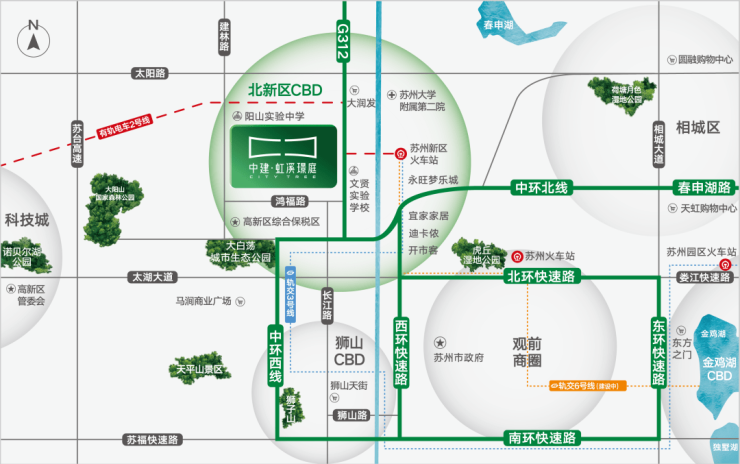 自驾:通过中环西线、中环北线和春申湖快速路,15分钟可达狮山CBD,20分钟直达工业园区