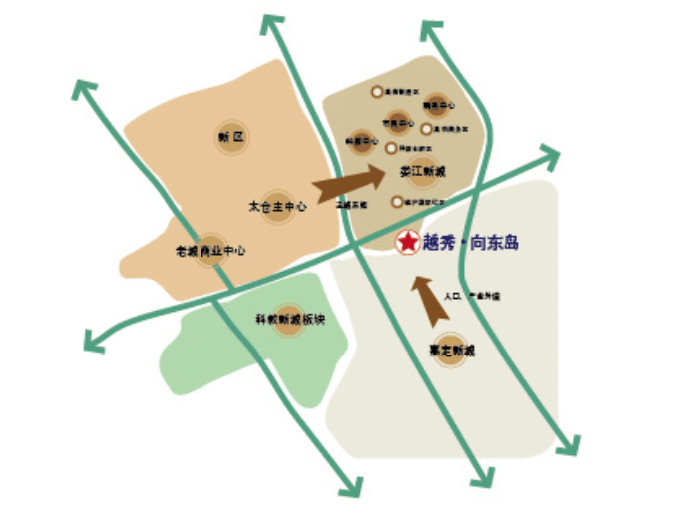 越秀向东岛项目位于太仓与上海嘉定交汇处,拥有上海(嘉定区新和路1558号)、太仓(富达路1号)双门牌号,由国有企业越秀集团越秀地产打造的百万方城市岛居综合大型社区