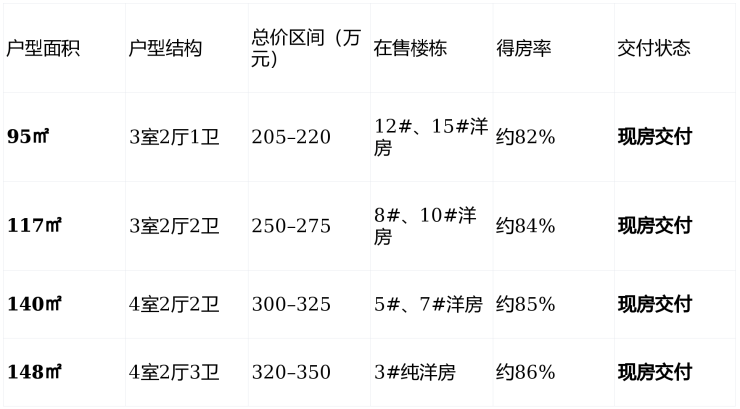 ✅ 温馨提示 :目前仅剩 3#纯洋房 (148㎡)为最后稀缺户型,其余楼栋均为现房,可随时看房入住。