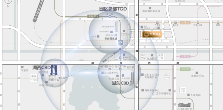 3公里内:金鸡湖CBD核心区(国金中心、诚品生活等)。