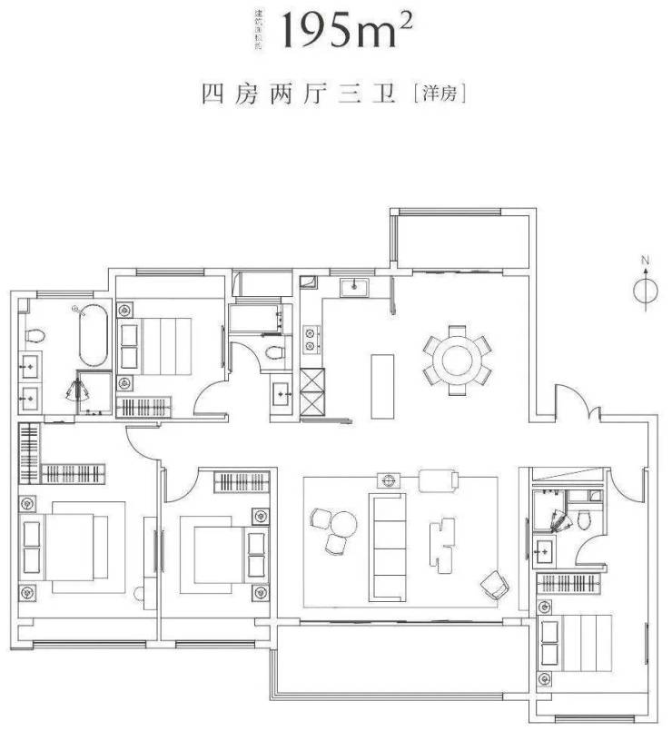 其中约165㎡和195㎡洋房大平层,为4开间朝南+南北双阳台的配置,各方面尺度都很优秀,是目前市面上比较吃香的4房户型!