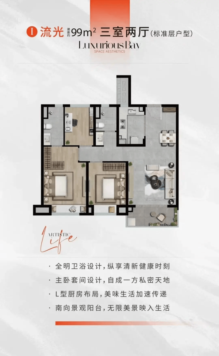 户型面积:建面约98-139㎡三至四房