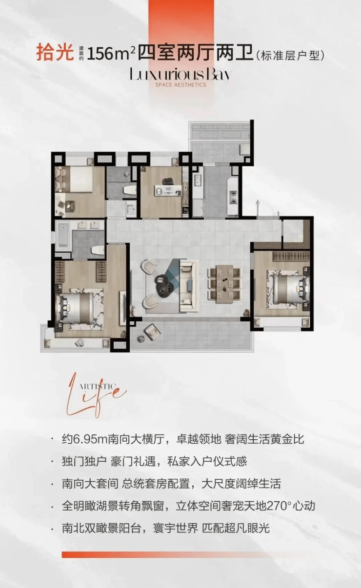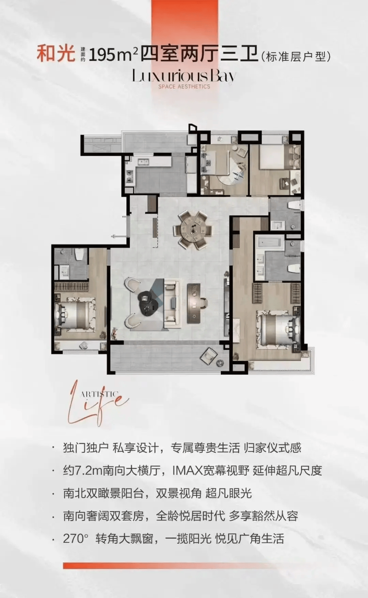 4室2厅3卫,195㎡,总价约585万元