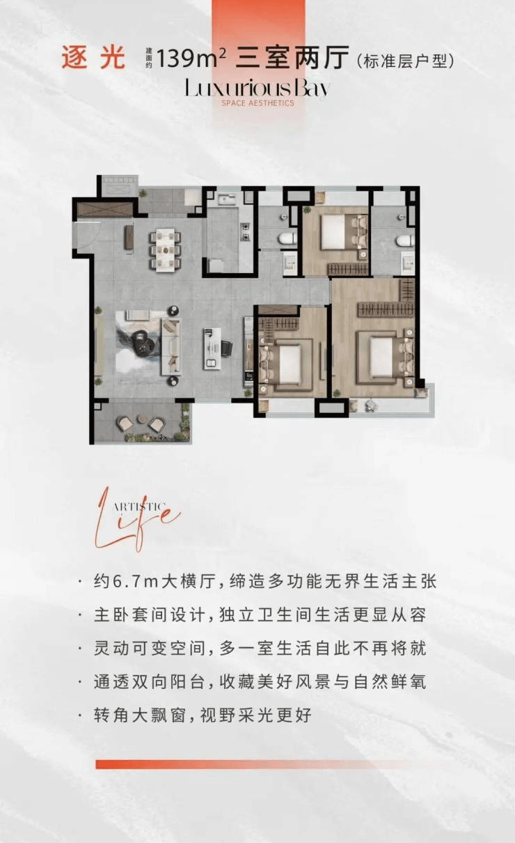 3室2厅2卫,139㎡,总价约390万元