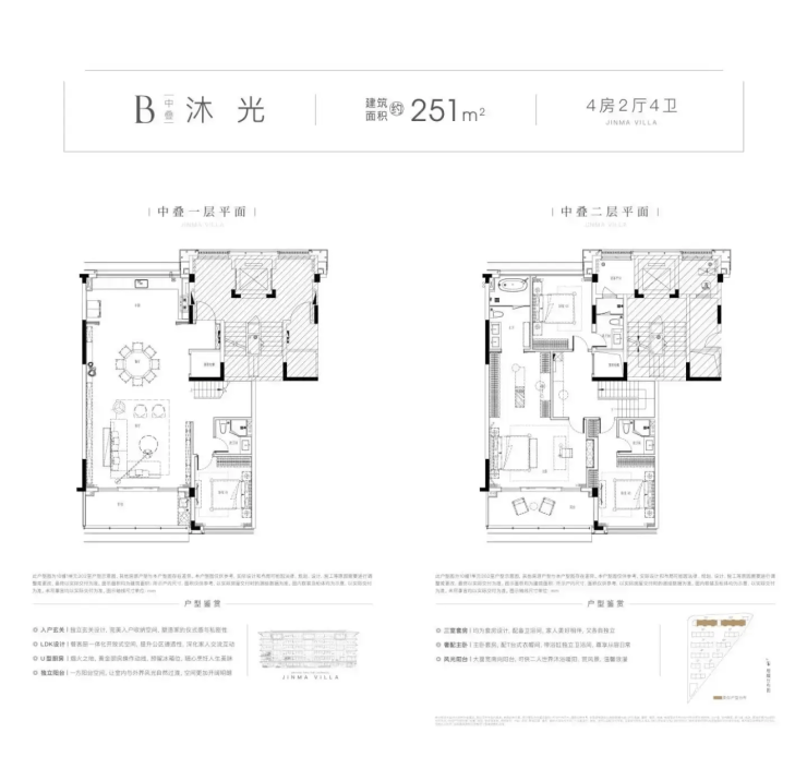叠排别墅:建面约238-270㎡,总价900-1200万,下叠带120㎡私家庭院,上叠配59㎡星空露台,中叠为平墅设计。
