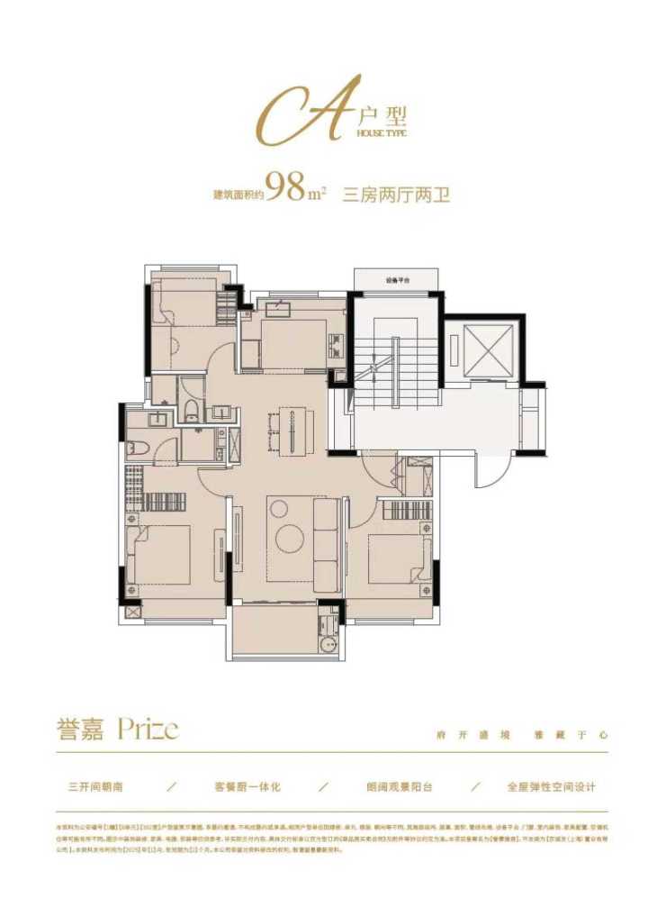 建面约98㎡三房