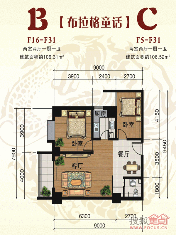 2室2厅1卫-2室2厅1卫 E户型 B/C户型