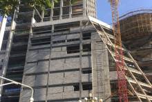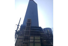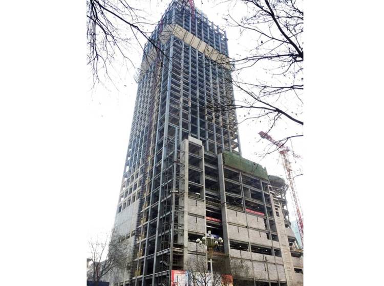 亚欧国际(别名红楼时代广场)位于甘肃省兰州市城关区南关什字东南角,地处城市中心繁华地带,周边东侧为交通银行,西侧为城市主干道酒泉路,北临主干道庆阳路,北面为百安商场,是兰州市传统的商业中心。项目主要建筑功能为商场、酒店及办公,由裙房和超高层塔楼组成。用地总面积9644.6平方米,总建筑面积约133846.63平方米。地上总建筑面积约为11.06万平方米,地下总建筑面积约为2.32 万平方米。亚欧国际项目由兰州民百集团开发,浙江建工集团承建。项目总高313米,共有56层,其中裙房10层,主体塔楼46层。1至7层为商场,8至14为休闲娱乐配套,包括宴会厅,室内游泳池,健身房等。15至37层为写字楼,一层面积为1700平方,层高3.8米,楼层中心为公共区域(装修),外立面全部采用单元式玻璃幕墙,视野开阔,单独搭配5部电梯(型号瑞士迅达7000,运行速度6m/s),空调使用美国约克空调(多联式)。38至53层为五星级酒店(万豪酒店),54至55为观光层,楼顶设有直升机停机坪。地下共有3层,其中负1层为精品超市,负2,3层为设备间及停车场。地下共有306个车位,地上立体停车塔200个车位,共有506个车位,以上为项目基本情况。