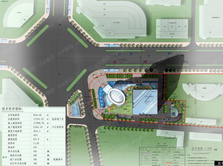 地下共有306个车位,地上立体停车塔200个车位,共有506个车位。