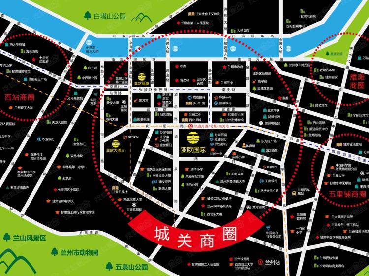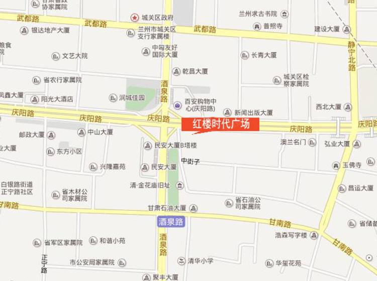 驾车至南关十字,项目位于南关十字东南角(原兰州百货大楼)