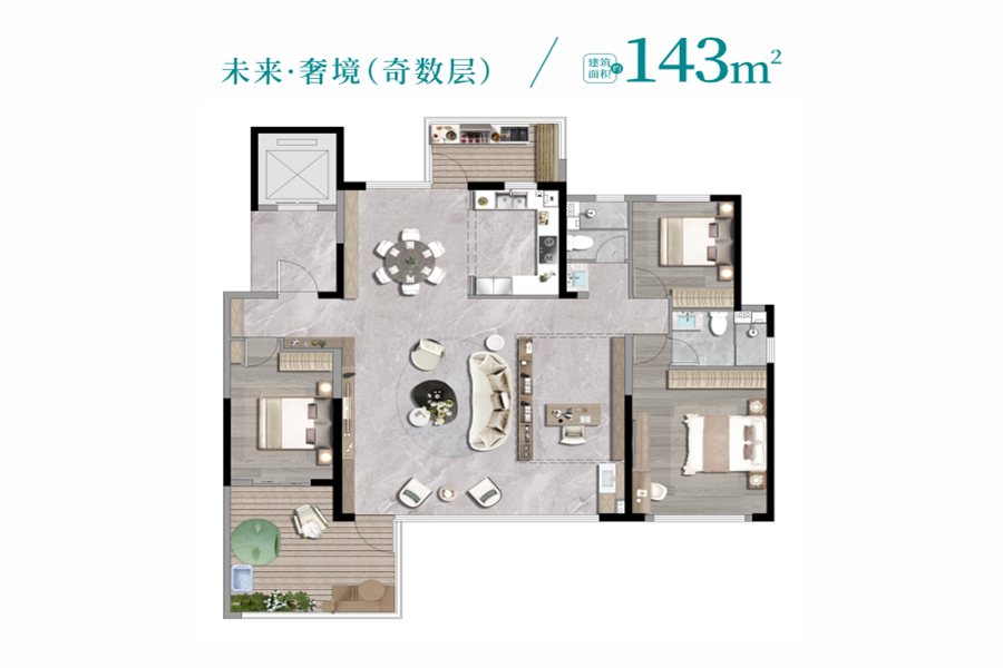 待售 户型方正 全明格局 卧室带阳台 主卧带卫 露台