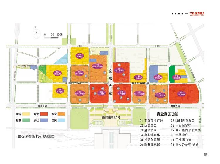 兰石·豪布斯卡整体由商业商务办公区与宜居生活区组成,涵盖大型购物中心、慢商业街区、商务办公、总部基地、星级酒店、会展中心、甘肃省工业博物馆、会展中心、品质人文住宅等业态。