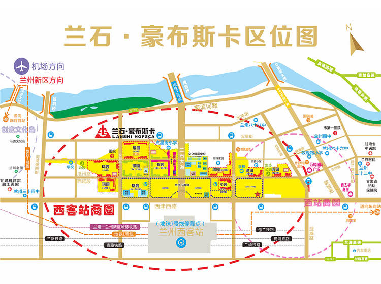 驾车至西津西路原兰石厂(兰州西客站北侧),即可到达兰石·豪布斯卡项目地。