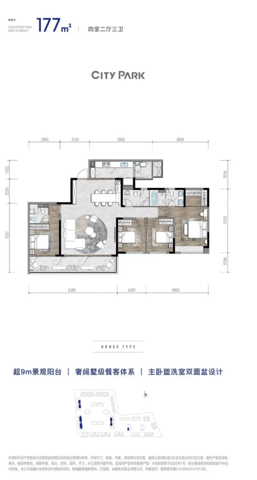 此面积段是项目的主力改善区间,产品呈现多样化。约152㎡ 户型可能采用阔绰的横厅设计,强化家庭社交属性;约153-177㎡ 的户型则普遍升级为四房,164㎡三室三厅三卫奢阔尺度,177㎡ 户型更实现双套房配置,充分满足二孩家庭或多代同堂对空间独立性与功能性的高要求。