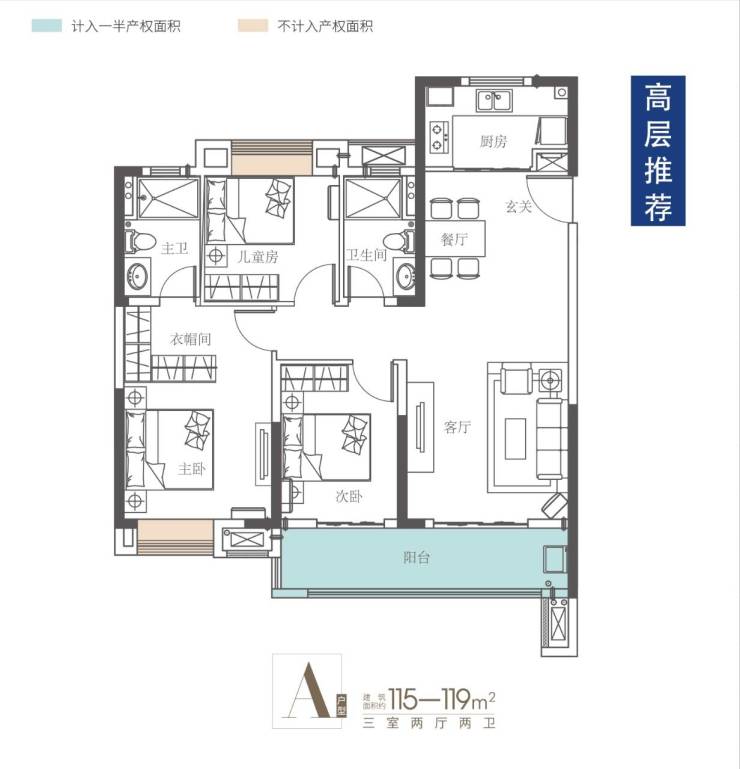 【户型鉴赏】高层115平:三房两厅两卫