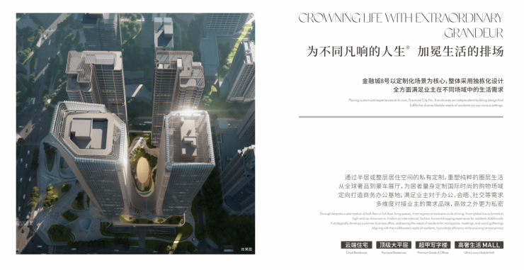 从金融城 13 年断供后的稀缺红利,到 220-600㎡大师定制大平层,再到藏品级的资产属性与成熟顶豪配套,金融城 8 号每一项优势都精准击中塔尖人群的核心需求。