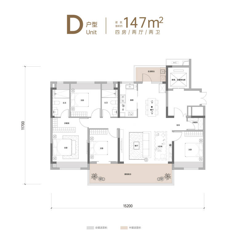 建面约147㎡4+1房2厅2卫·奢享电梯前室,独立入户空间·南向4.5开间,阳光洒满每个角落·约5.4m巨幕阔厅,定制多元场景·南北双阳台,生活诗意皆从容