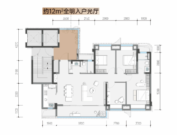 人性化空间平权:在放大客厅与主卧尺度的同时,坚持“平权主义”设计,确保其他次卧开间也达到舒适的3米,面积约11-12㎡,保障每位家庭成员的居住尊严与舒适度。
