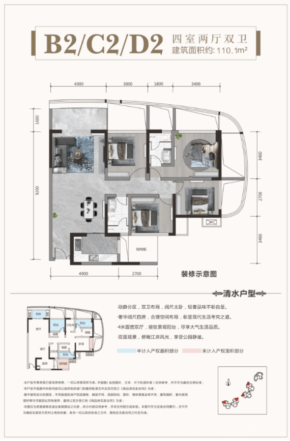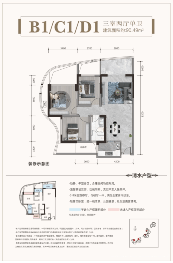 建面约90-110㎡ 功能性套二/套三