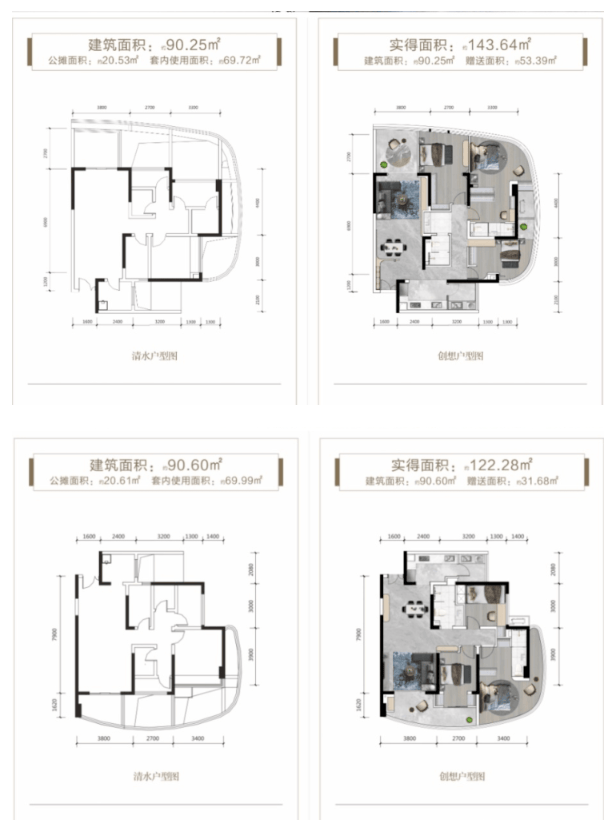 建面约120-143㎡ 舒适性套三/套四