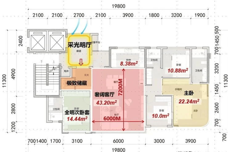 超大入户光厅,主卧配备独立衣帽间,客厅大气开阔,适合多代同堂家庭。
