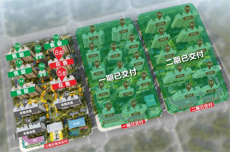 约50万方恢弘体量,用比肩国际化标准的理念,撷取一期、二期建造之精髓,迭代居住品质,让居者优享丰盛自然配套。目前,一期、二期已完美交付,业主们陆续幸福入住。三期一批次2024年12月31日即将交付,A5#/A8#火热销售中。
