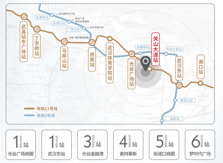 项目位于关山大道与雄楚大道的交汇处关山中学旁,地处光谷核心“三纵三横”主轴的黄金中心点。千米关山大道,前有高等学府文脉底蕴,后有世界500强企业、重量级人文商业聚集,今日之成就,足以担当光谷人文脊梁。