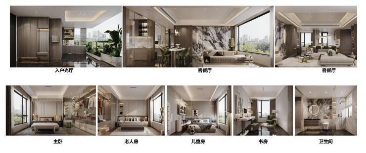 户户配置入户光厅;全系大横厅+大阳台设计;LDK一体化空间;主次卧奢适尺度保障;精研当代高端家庭生活场景所需,定制化打造人与自然强交互、人与人强交互的家庭社交型空间。