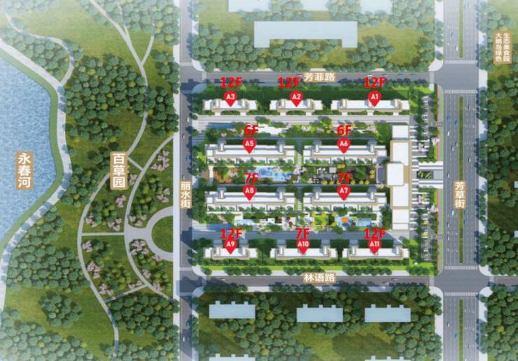 1、园区规划10栋楼,5# 6# 7# 8#是6-7层洋房,1#2#3#9#10#11#是11-12层类洋房