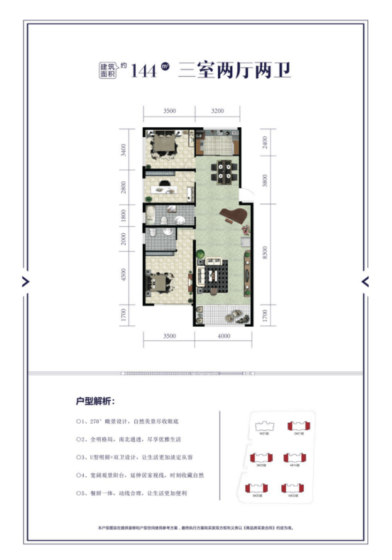 【户型面积】悦境-建面约97㎡两室两厅一卫;逸境-建面约126㎡三室两厅两卫;御境-建面约144㎡三室两厅两卫