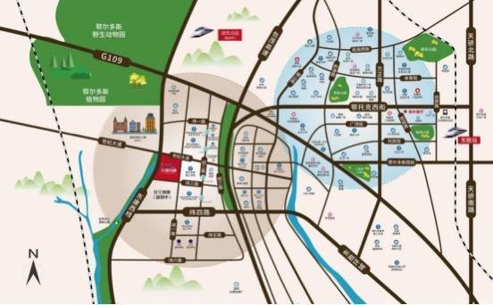 【交通】:东康西线、世纪大道、包茂高速、东胜北站(规划中),公交14路、19路、325路;