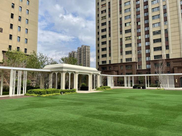 公园式社区规划,住宅建筑沿地块四周布局,留出充足空间,在社区中心形成围合式的超大公园庭院园林,供业主休闲放松。
