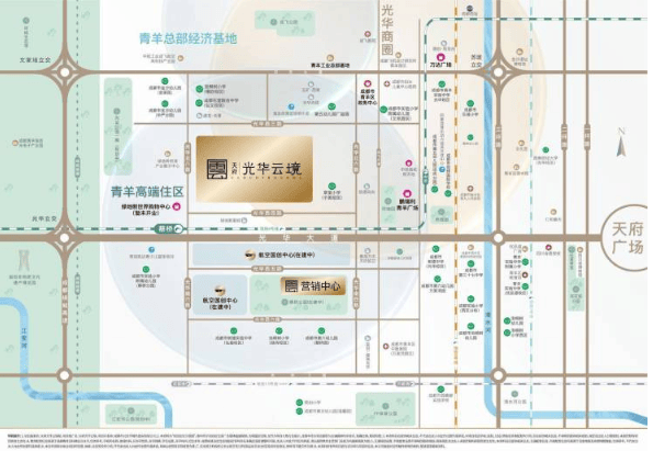 项目落子于成都传统“西贵”之地——青羊区的光华新城板块。这里既承袭了千年青羊深厚的文化底蕴与优质公共资源,又作为青羊区重点发展的现代化宜居新城,形成了 “商务+产业园区驱动,教育资源环伺” 的成熟格局,是成都主城西不可多得的、兼具历史感与现代活力的价值高地。