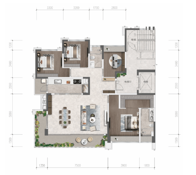 项目主力产品为建面约128-183㎡的2梯2户板式平层,全线产品均采用市场备受追捧的横厅设计,以朗阔的尺度、灵活的动线与多功能空间,满足不同家庭结构的改善需求。