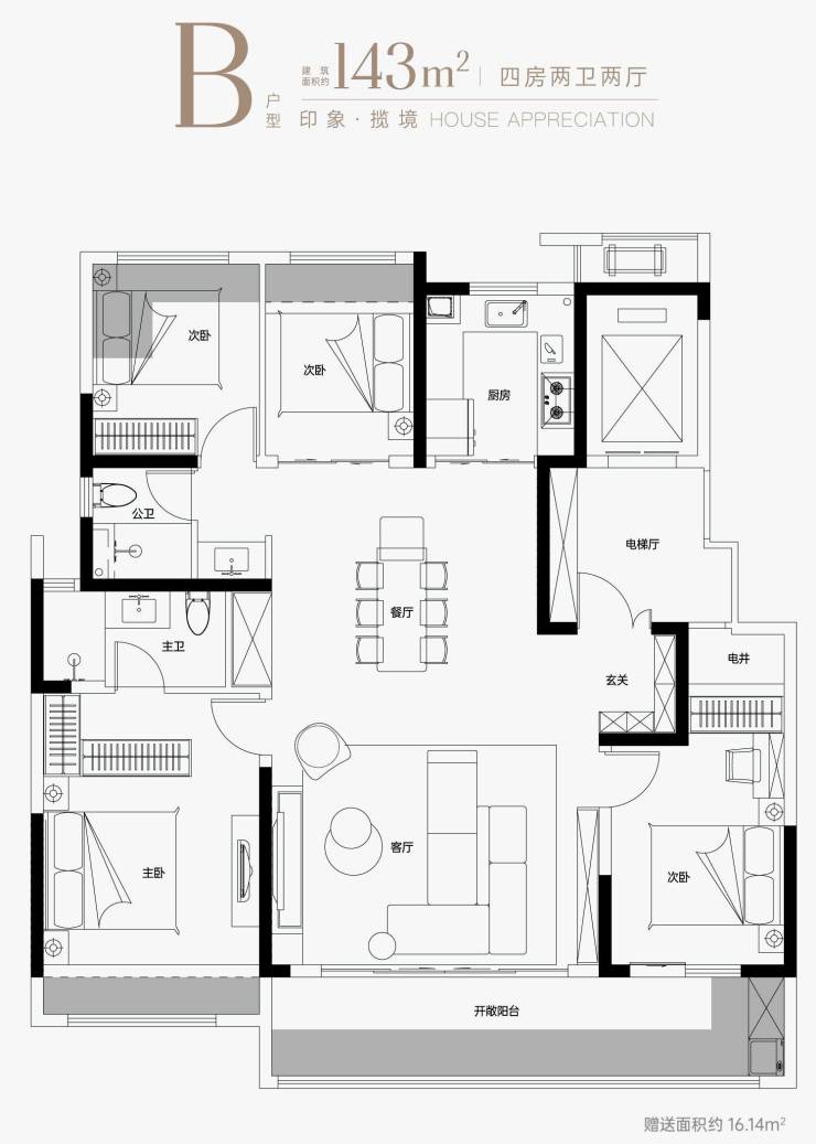 B户型「建筑面积约143㎡」
