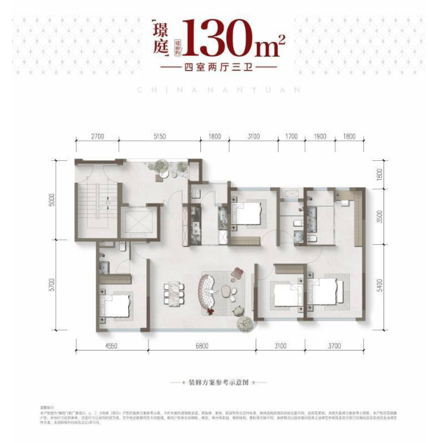 建面约120-130㎡ 舒适四房三卫