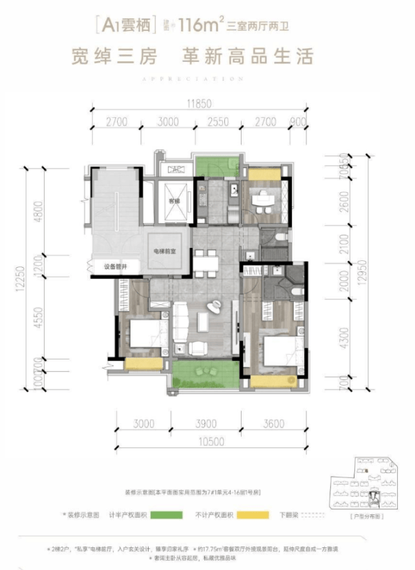 建面约108-116㎡ 舒适三房(小高层)
