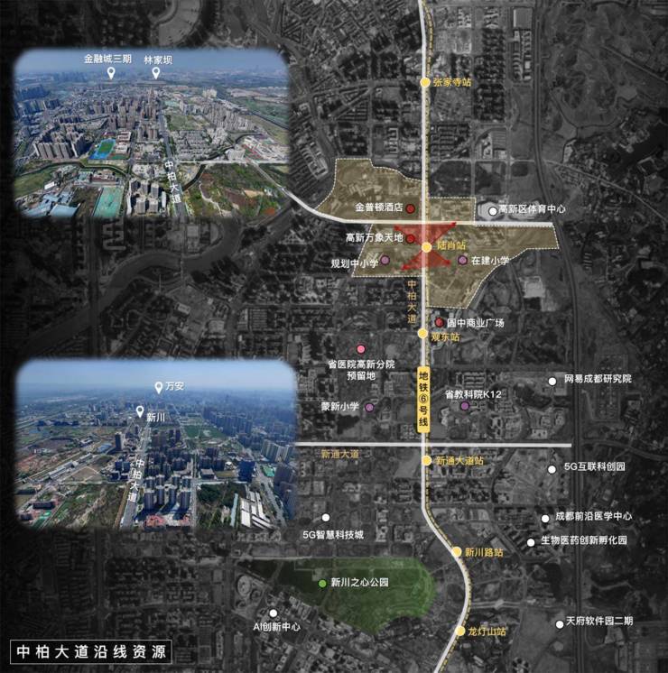 黄金中轴交通枢纽,汇聚资源与机遇紧邻地铁6号线,中柏大道与地铁6号线的走向一致口,连接多个重要区域和节点,汇集区域内黄金资源。
