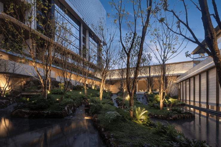 围绕川西主题创新构造自然场景,将川西坡地的层叠韵律、山林的自然野趣渐次引入,营造出“山中有池,池映山色”的野奢秘境。