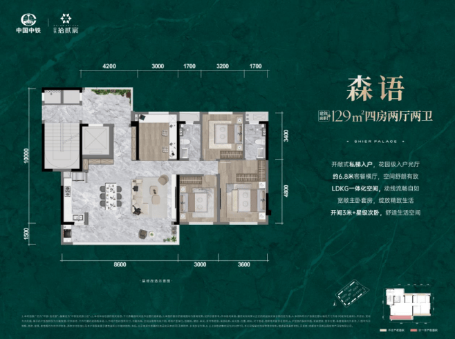 项目产品线清晰纯粹,起步即为建面约129㎡的功能四房,并向上延伸至约175㎡的奢阔四房,全线产品以“全四房”设计精准回应多代同堂家庭的改善核心诉求,并由央企精工保障精装交付品质。
