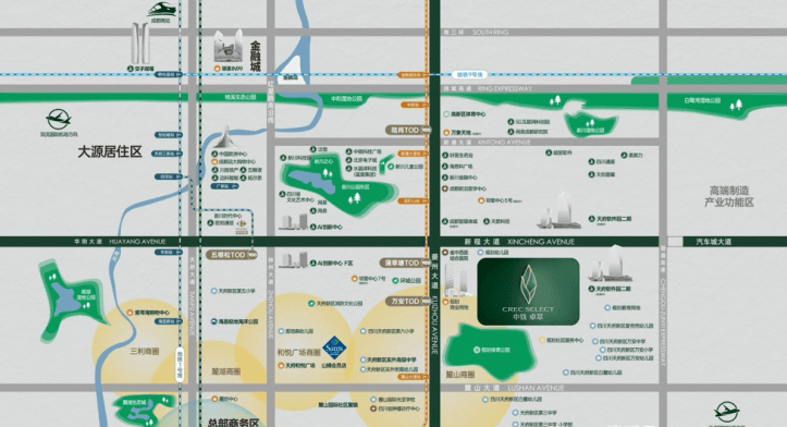 中铁卓萃雄踞城南新川核芯,处于 “双轴交汇、双芯集萃” 的黄金区位:北承高新区金融城、大源的成熟配套与产业势能,南接天府中央法务区、天府总部商务区的未来规划,既享当下繁华,又握未来机遇。