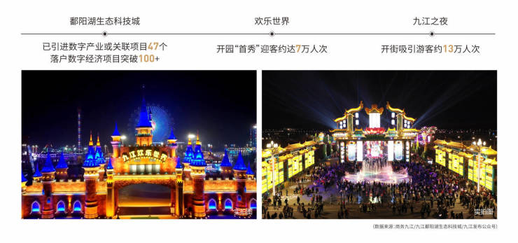 丰盛休闲配套,美好持续兑现,欢乐世界“首秀”迎客达7万人次,九江之夜开街当晚,吸引游客约13万人次,高品质生活场景触手可及。