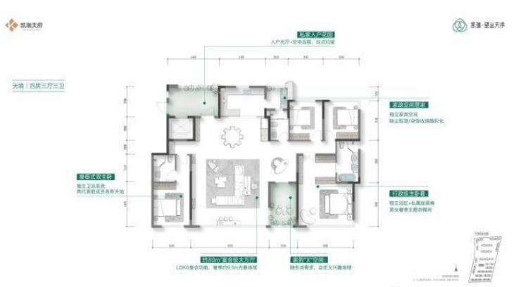 项目产品线清晰划分为面向高端平层改善的“情景奢宅”与追求有天有地生活的“揽翠墅院”,全线产品均面向改善客群,以不同的空间哲学回应相同的公园生活向往。