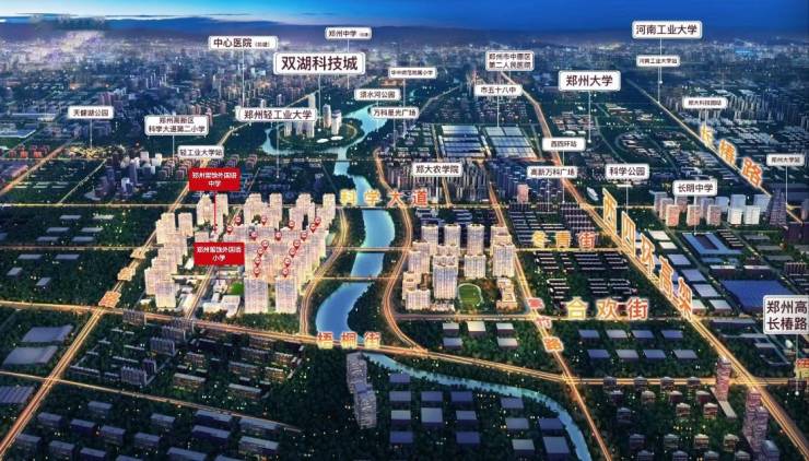 项目配套9年义务教育公办学校——郑州外国语学校(留馀校区),郑州外国语成员校,与外国语总校统一管理、资源共享。项目三期松樾与留馀校区直线约100米,小学部+中学部独立双校区办学;周边3公里内分布“双一流”郑州大学、省级重点郑州轻工业大学等高校资源。(教育资源已当期政府发布信息为准)